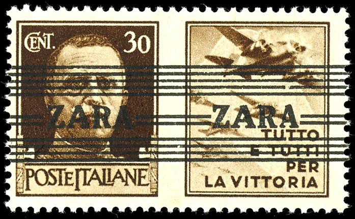 2 liras airmail stamp, cancelled "Cetinje 2 * 10. XI. 43 *" - CTO on the founding day of the management committee dated, the stamp appeared first at the 9. December 1943, photo expertize Brunel BPP (2010) "the condition is perfect. ", Michel 120.- (13) Certificate 2 Lire Flugpostmarke, entwertet "Cetinje 2 * 10.XI.43 *" - Gefälligkeitsstempel auf den Gründungstag des Verwaltungsausschusses datiert, die Marke erschien erst am 9. Dezember 1943, Fotobefund Brunel BPP (2010) "Die Erhaltung ist einwandfrei.", Mi. 120.- (Image)