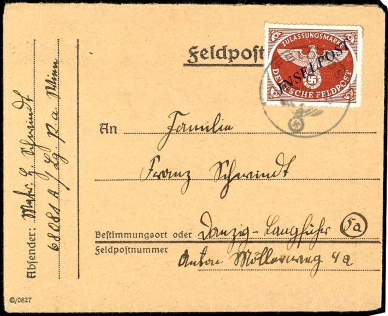 Zagreb as usual rouletted with blue overprint from plate I on complete folded letter of the sailors Schmidt with standard stamp 1.3.45 from FP. Number 68081 (port commander Rhodes, 6. / 15. Landing flotilla and fleet command Rhodes. ) via LGPA Vienna to his fathers to Gdansk Langfuhr, interesting war-related text (10BbI) Agram üblich durchstochen mit blauem Aufdruck von Platte I auf komplettem Faltbrief des Matrosen Schmidt mit Normstempel 1.3.45 ab FP.-Nr. 68081 (Hafenkommandant Rhodos, 6./15. Landungs-Flottille und Flottenkommando Rhodos.) via LGPA Wien an seinen Vater nach Danzig Langfuhr, interessanter kriegsbezogener Text (Image)