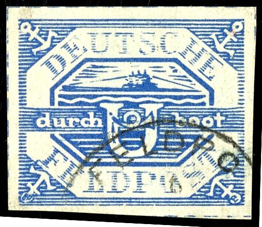 Submarine Hela, admission stamp, used with army postal service standard stamp, signed Zierer, photo expertize Guy Gabisch BPP "the stamp is in a good condition for this issue. ", Michel 2.000.- (13b) Certificate U-Boot Hela, Zulassungsmarke, gestempelt mit Feldpost-Normstempel, signiert Zierer, Fotoattest Guido Gabisch BPP "Die Marke befindet sich in einer für diese Ausgabe guten Erhaltung.", Mi. 2.000.- (Image)