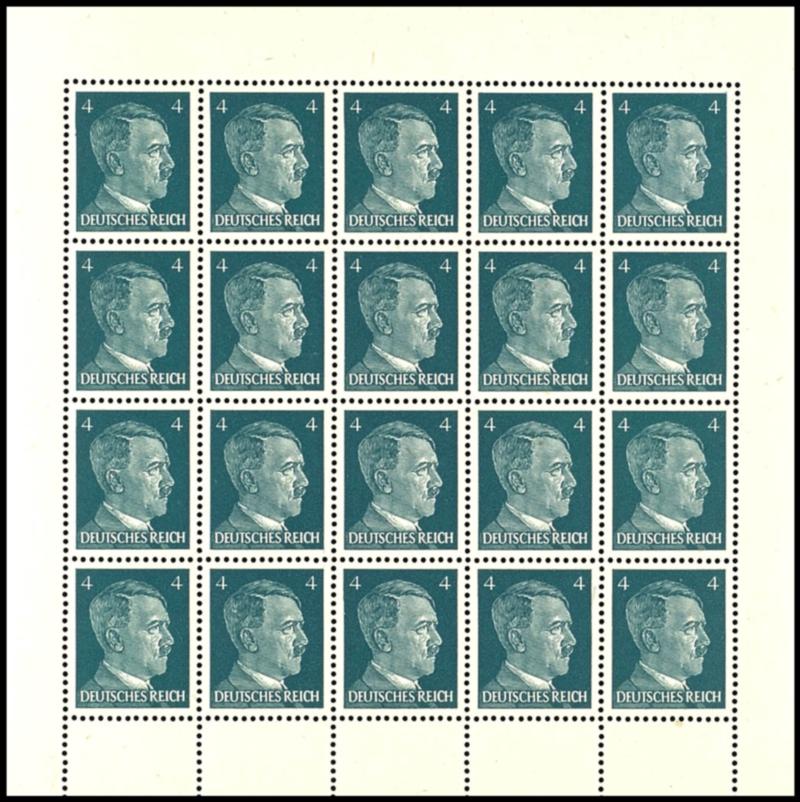 British forgeries for Germany: 4 Pfg Hitler, sheet of 20 each values, perfectly mint never hinged, as sheet hardly ever offered! (24ABogen) Britische Fälschungen für Deutschland: 4 Pfg Hitler, Bogen zu 20 Werten, tadellos postfrisch, als Bogen kaum einmal angeboten! (Image)