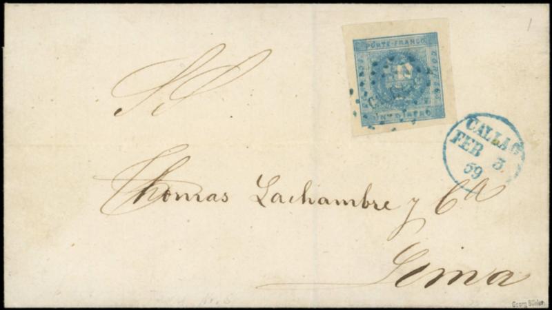 4 : 1 dinero bleu, obl. CALLAO s. LSC 3/2/59, TTB (Image)