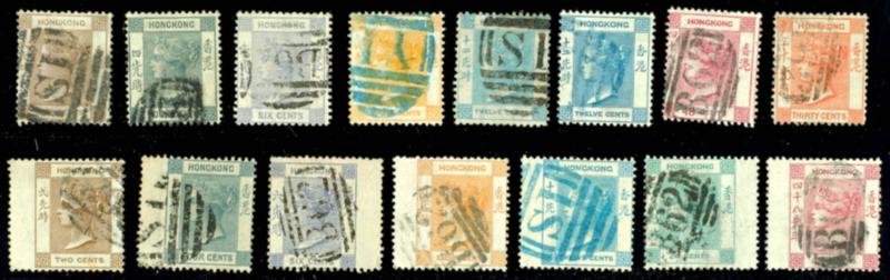 1863, 2-48 c. sauber (tls. farbig) gestempelt inkl. der 12 c. in a- und c-Farbe. Dazu desgl. ohne 30 c. mit Breitrand (hier zwei Werte mit kl. Zahnverkürzungen, was bei Breitrandmarken akzeptabel sein dürfte), Mi. 275.-+ (Image 1)(Image)