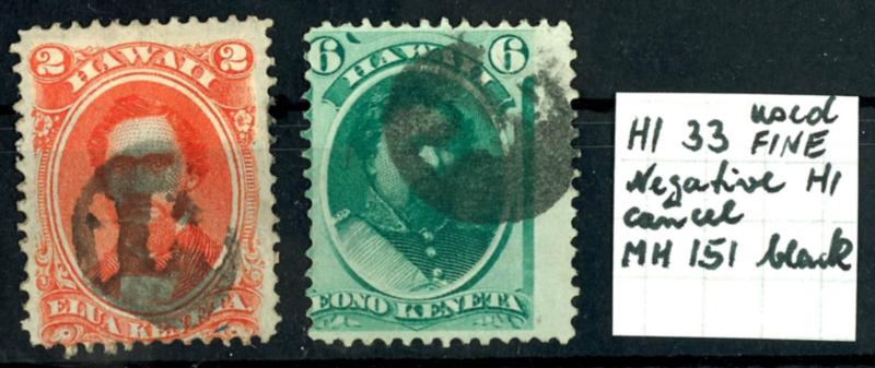 2 C. Orange red with alphabetic cancel "D" and 6 C. Green with negative postmark (MH 151) in each case in black, sound (12,21)
