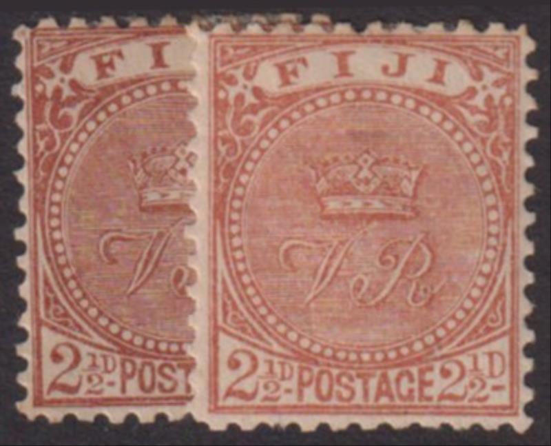 Fiji 1897 2½d brown, also yellow-brown, p11 x 11¾. SG 103, 103a. Cat £27. Both mint. (Image)