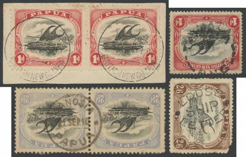 Small 'PAPUA' ½d complete sheet of 30 (minor perf separation) with varieties noted on 7 units; 1916-31 Bicolours unmounted mint to 2/6d including extra shades, and a fine used complete set to 10/-.