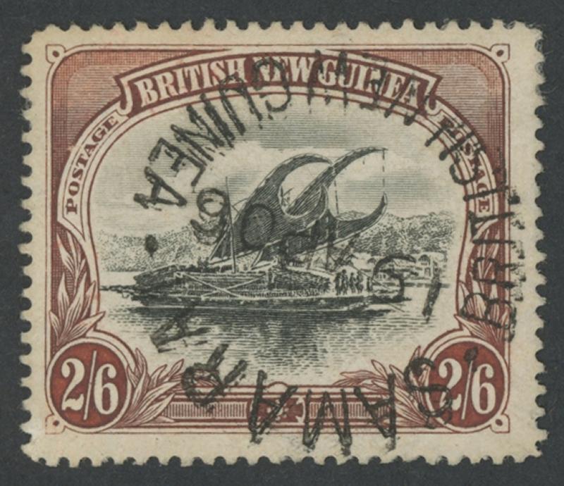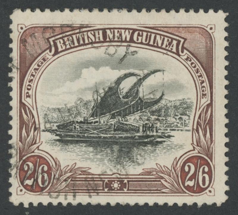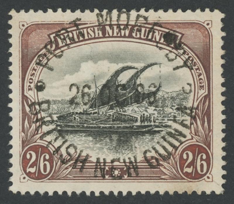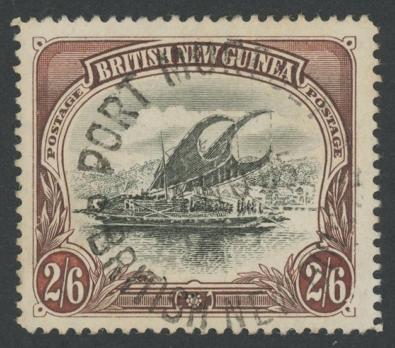 1901-05 British New Guinea Rosettes Watermark Horizontal Thick Paper Line Perf 14 2/6d black & brown SG 8, quite well-centred, very fine complete 'PORT MORESBY/26OC06/BRITISH NEW GUINEA' unframed cds cancel, one aged perf tip at base, Cat £550. (Image1)