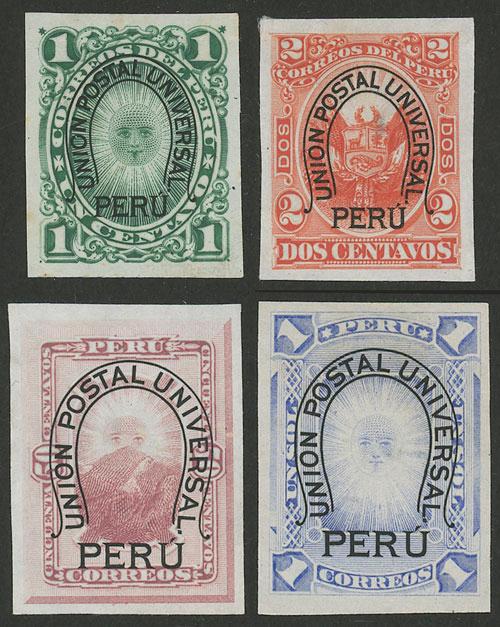 Sc.95 + 96 + 99 + 100, 1883 4 PROOFS of the stamps overprinted with "horseshoe" in the adopted colors, rare lot, VF quality! (Image)