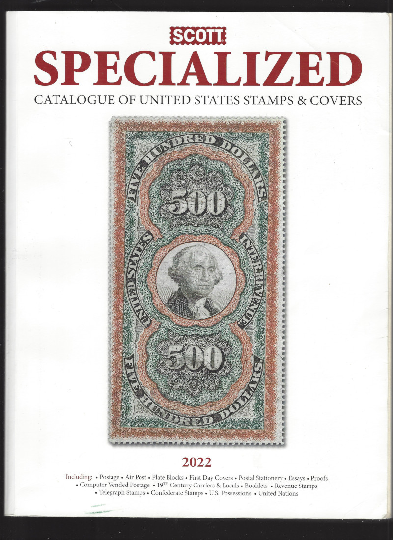 "SCOTT" Specialized Catalog, United States Stamps & Covers (2022 Ed.), Used, Clean, VF Cond., Retail Price was $140.00 (7. lbs.) (Image)