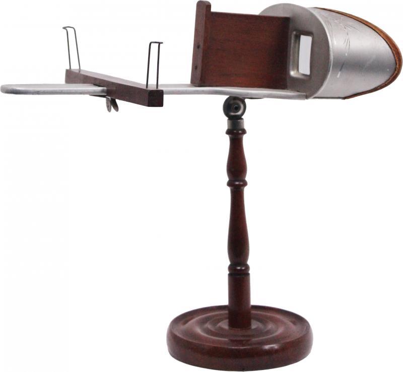 Stereograph Viewers George Rose Stereoviewer, superb condition in original box; Pedestal Stereoviewer by Fine-Art Photographic Publishing Co, London; beautiful wooden table-top Stereoviewer with fold-out magnifying glass, in Fine condition.