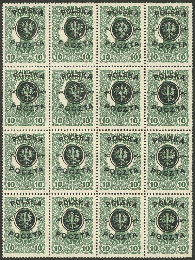 Sc.27, 1918 10h. Lublin issue, large MNH block of 16, excellent quality! (Image)