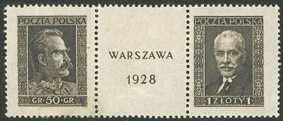Yvert 340/341, 1928 Warsaw Exposition, the set of 2 values in gutter pair (from the souvenir sheet), with light hinge mark on the gutter, the stamps are MNH! (Image)