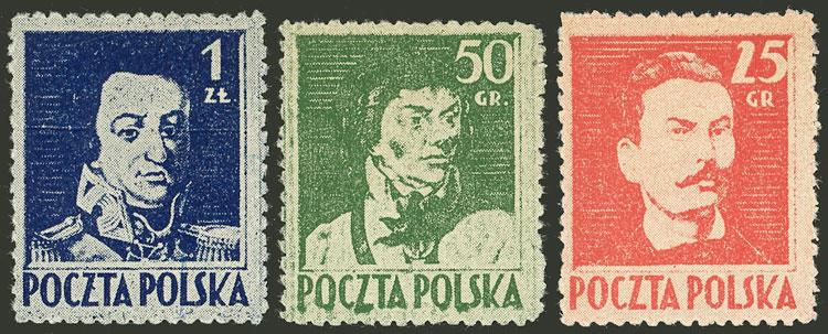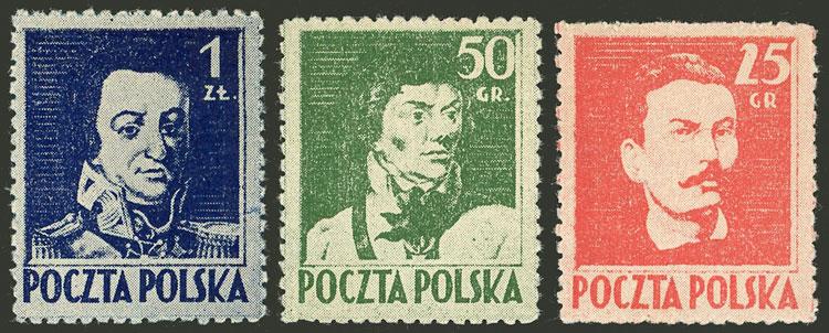 Yvert 427/429, 1944 R. Traugutt, complete set of 3 values, mint with tiny hinge marks (issued without gum), excellent quality! (Image)