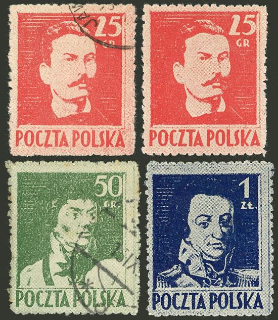 Yvert 427/429, 1944 R. Traugutt, complete set of 3 values, mint or used + another example of 25g., very fine quality! (Image)