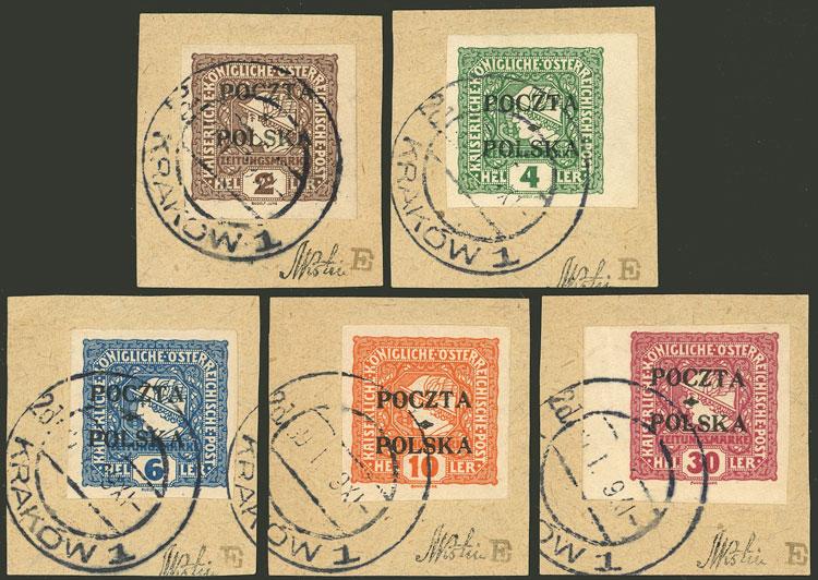 Sc.P1/P5, 1919 complete set of 5 values of Austria overprinted, used on fragments, excellent quality! (Image)