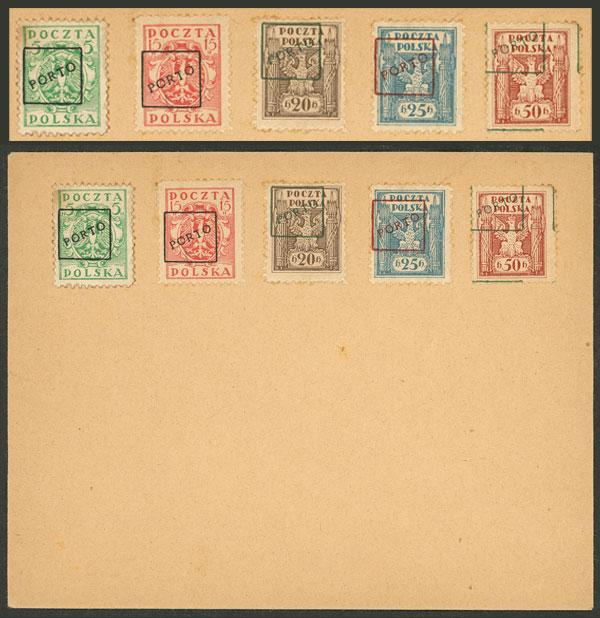 5 Definitive stamps of 1919 overprinted with framed diagonal "PORTO", affixed to an envelope without postal marks, interesting! (Image)