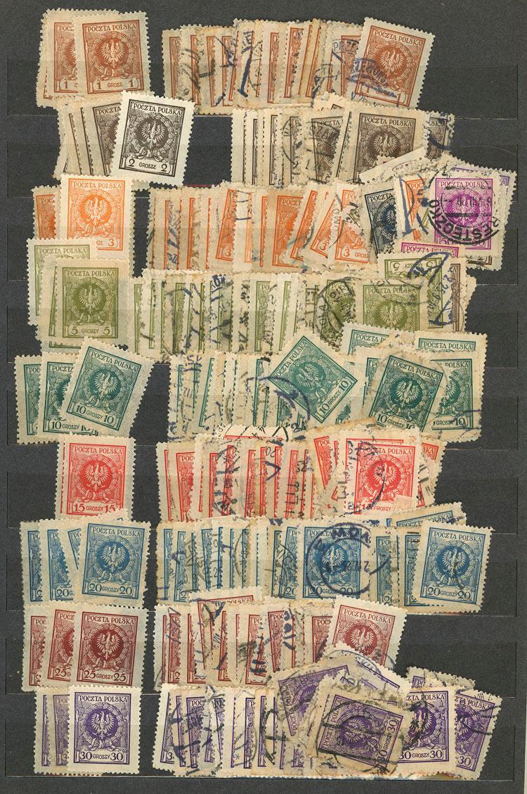 LOCAL ISSUES, DANZIG, MARIENWERDER, Allenstein, Ukraine occupation, Silesia, etc: Large stock in old stockbook, full of mint and used material, in general of fine to very fine quality (a small percentage may have defects, UNCHECKED). This lot has huge potential. The material was put together for decades by a Polish stamp collector specialized in Poland, who lived in Argentina. IMPORTANT: Please view ALL the photos of the lot, because all the material has been scanned. Heavy lot, shipping costs worldwide from Argentina will be approximately US$50, please take this into account before placing your bid. We can also mail the stamps alone (without the album), with shipping costs approx. US$30. (Image)