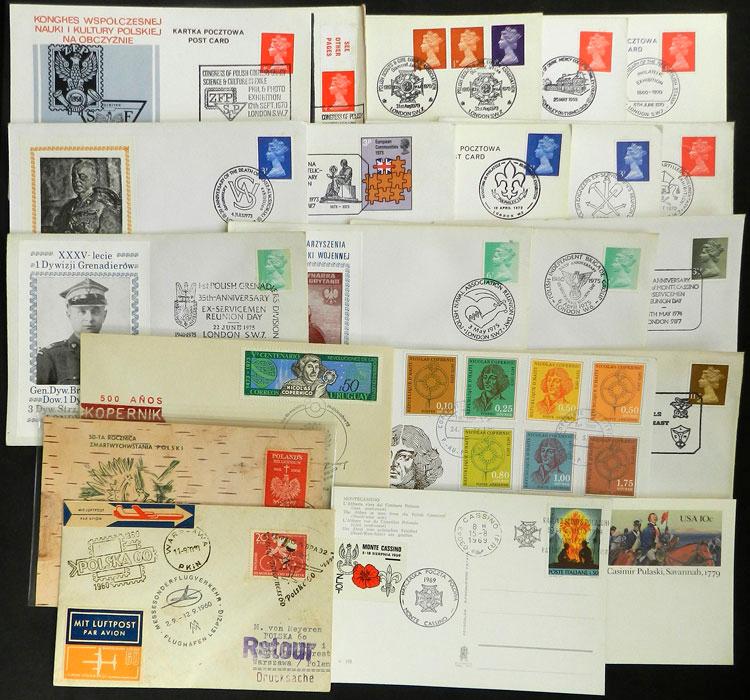 Lot with about 50 covers, cards etc. related to Poland, with special postmarks, commemorative marks, etc., most of Great Britain. There is interesting material and some pieces are very scarce, low start! IMPORTANT: Please view ALL the photos of the lot, because all the material has been scanned (Image)