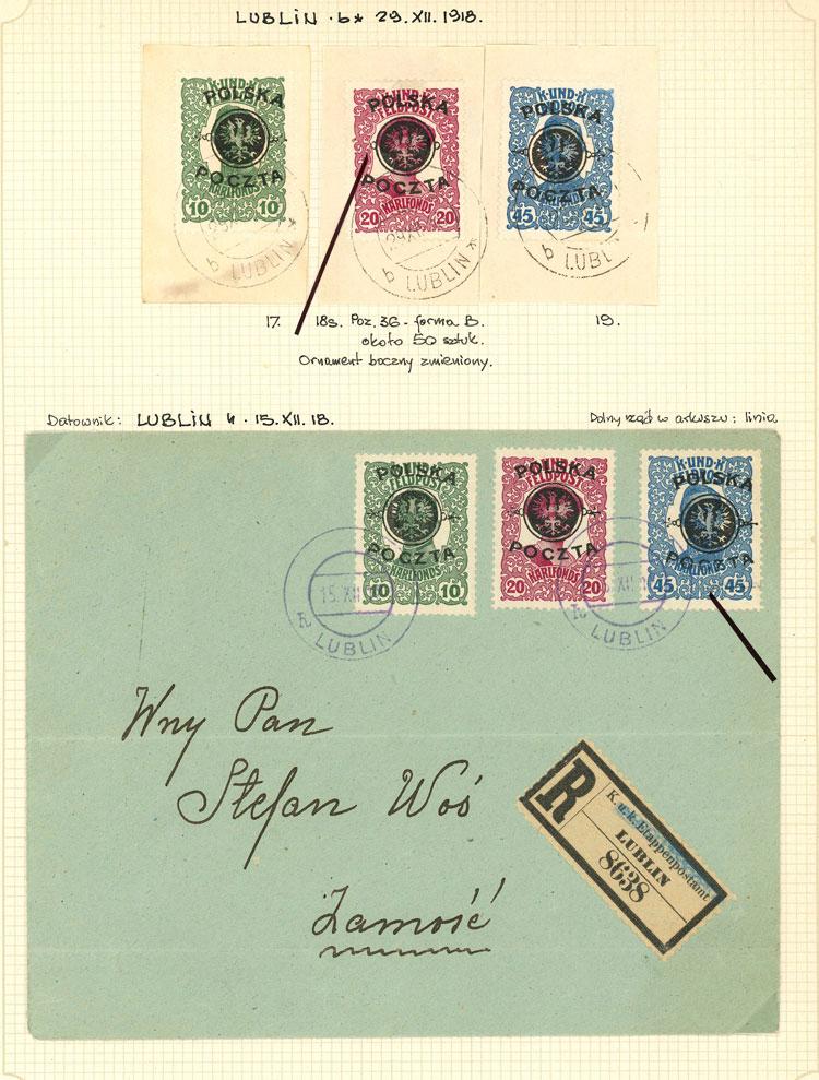 Yvert 108/110, 1919 Overprinted stamps of Austria-Hungary, the set of 3 values developed on 6 album pages, including inverted overprints, overprint varieties, used covers, and a study of forged overprints, excellent quality! IMPORTANT: Please view ALL the photos of the lot, because all the material has been scanned. (Image)