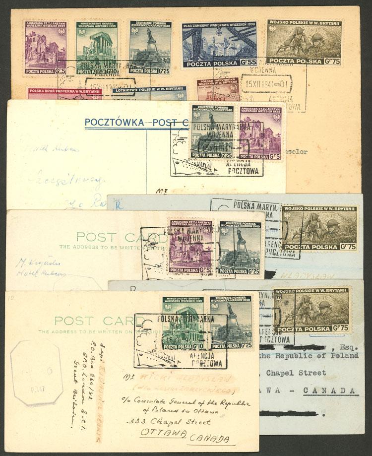 Sc.3K1/3K8, 1941 complete set of 8 values franking a cover sent to USA on 15/DE/1941 (first day of issue) + 5 cards sent to Canada with varied frankings, very nice lot ! IMPORTANT: Please view ALL the photos of the lot, because all the material has been scanned (both sides) (Image)