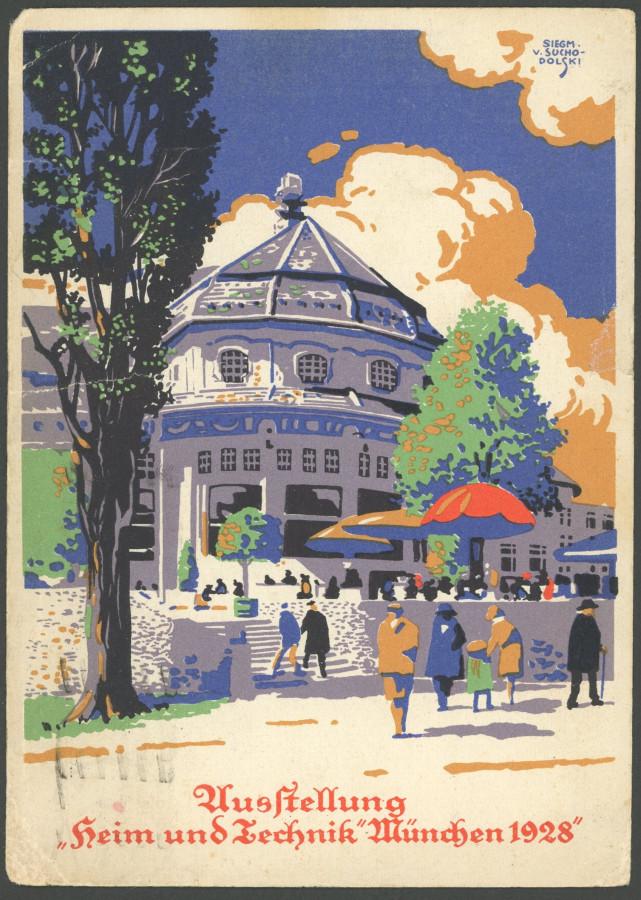 1928, exhibition home and technique Munich 1928 officially postcard, reverse exhibition vignette, from Munich to Amsterdam, at the bottom slight tear (Image)