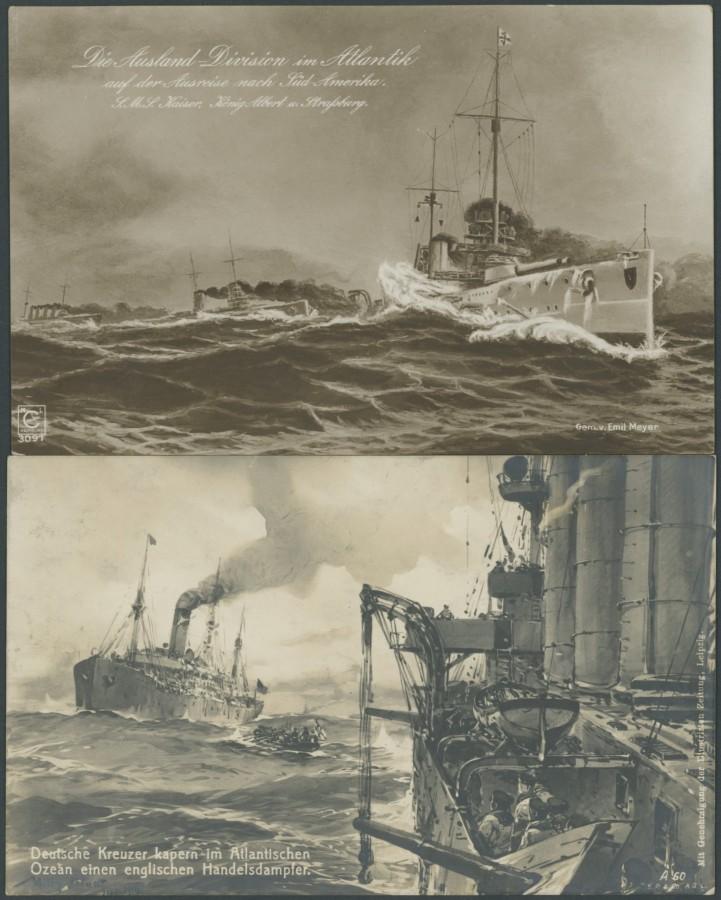 The foreign country division in the Atlantic, 2 various picture postcards (Image)