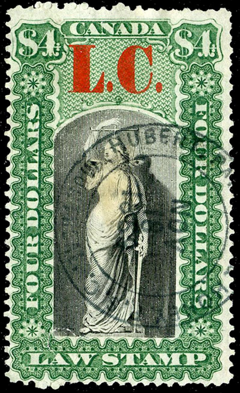 QL13: $4 green and red, used and almost very fine (Image)