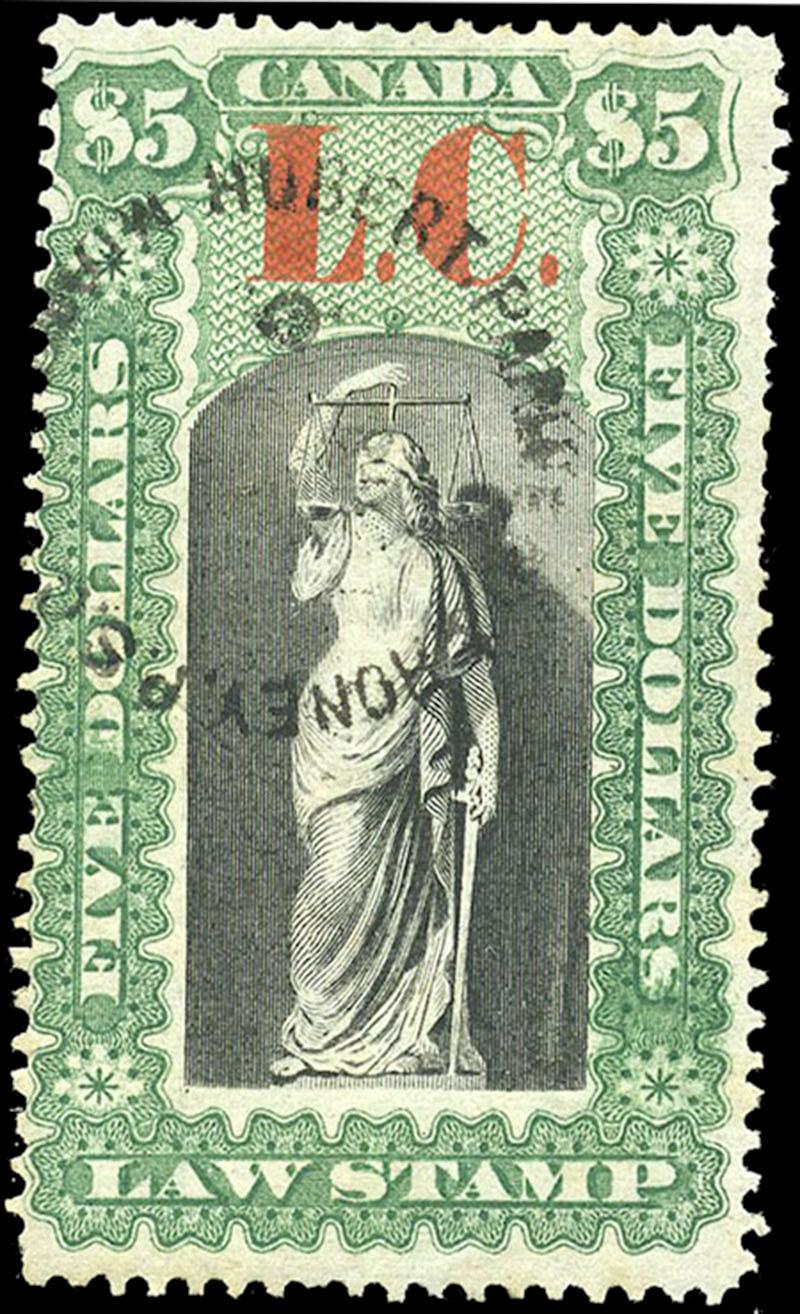 QL14: $5 green and red, used and fine (Image)