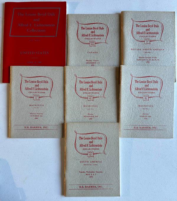 H.R. Harmer,The Louise Boyd Dale and Alfred F. Lichtenstein Collections, 1969-70, includes sales #1 and 6-10; plus 1989 Harmers of New York, Inc sale #12; a neat offering of an iconic collection. Estimate $50 - 75. Suggested Bid $50-75 (Image)