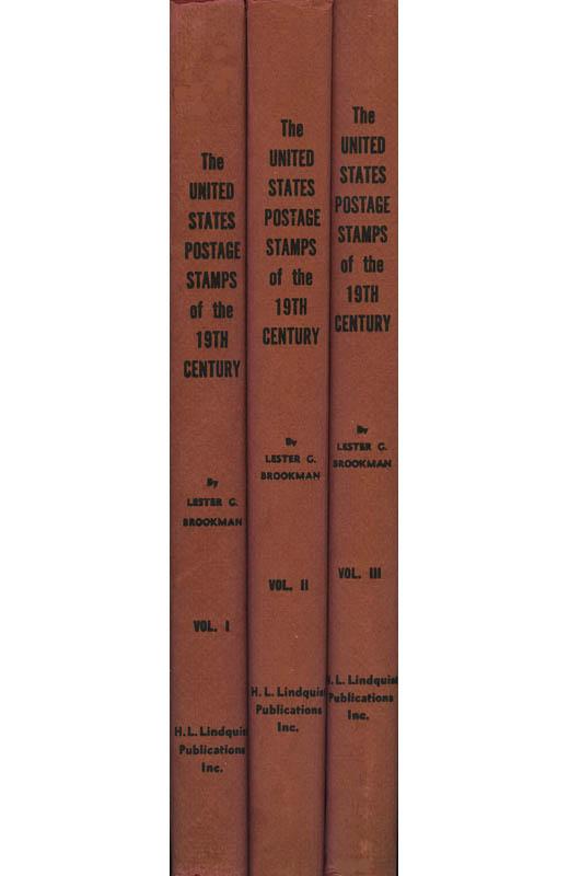 Brookman, Lester G.,The U.S. Postage Stamps of the 19th Century, published in 1966, 2nd edition (revised and expanded), hard bound, 3 volumes, 882 pages, the standard work on the subject, with a wealth of information, profusely illustrated in black & white. Nearly new. Shipping weight 5.9 lbs / 2.7 kilos. Estimate $50 - 75. Suggested Bid $50-75 (Image)