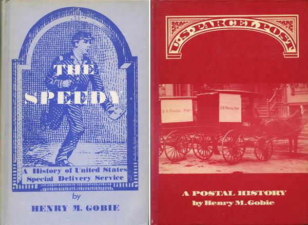 Gobie, Henry M.,The Speedy - A History of the U.S. Special Delivery Service, 1976, hard bound, 296 pages, very comprehensive, and profusely illustrated in black & white. Plus U.S. Parcel Post: A Postal History, also by Henry M. Gobie, 1979, hard bound, 250 pages, very detailed, illustrated in black & white. Both are in relatively good condition. Shipping weight 2.6 lbs / 1.2 kilos. Estimate $30 - 40. Suggested Bid $30-40 (Image)