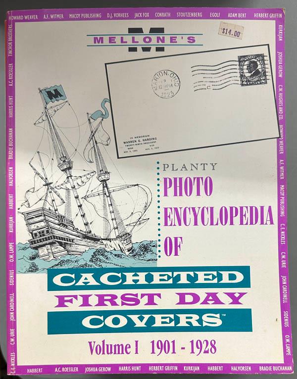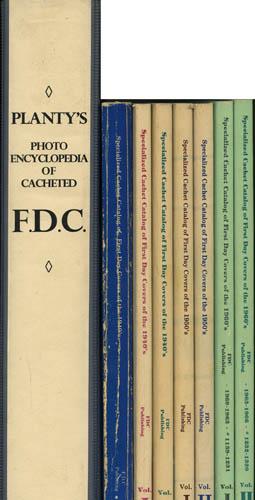 Mellone,Planty Photo Encyclopedia of Cacheted First Day Covers, volumes 1-18 (missing #11), all with black and white illustrations. Estimate $40 - 71. Suggested Bid $40-71 (Image)