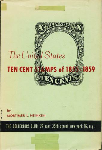Neinken, M.,The U.S. Ten Cent Stamps of 1855-1859, published in 1960, 252 pages, hard bound, well illustrated in black & white, the standard reference for plating. Dust jacket is a bit worn, otherwise in excellent condition. Shipping weight 1.8 lbs / 0.85 kilos. Estimate $30 - 40. Suggested Bid $30-40 (Image)