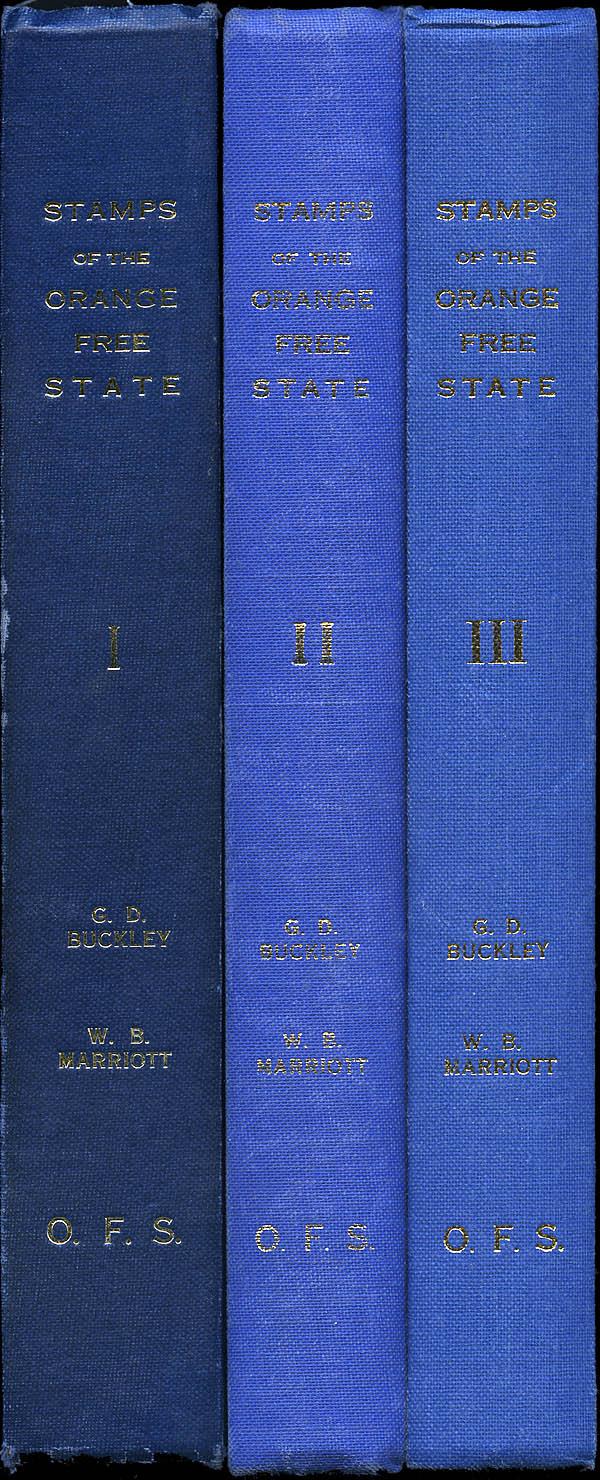 [Orange Free State] Buckley & Marriott,Stamps of the Orange Free State, 1966-76, 3 volumes, hard bound, 282 + 211 + 247 pages, illustrated in black & white. Estimate $30 - 40. Suggested Bid $30-40 (Image)
