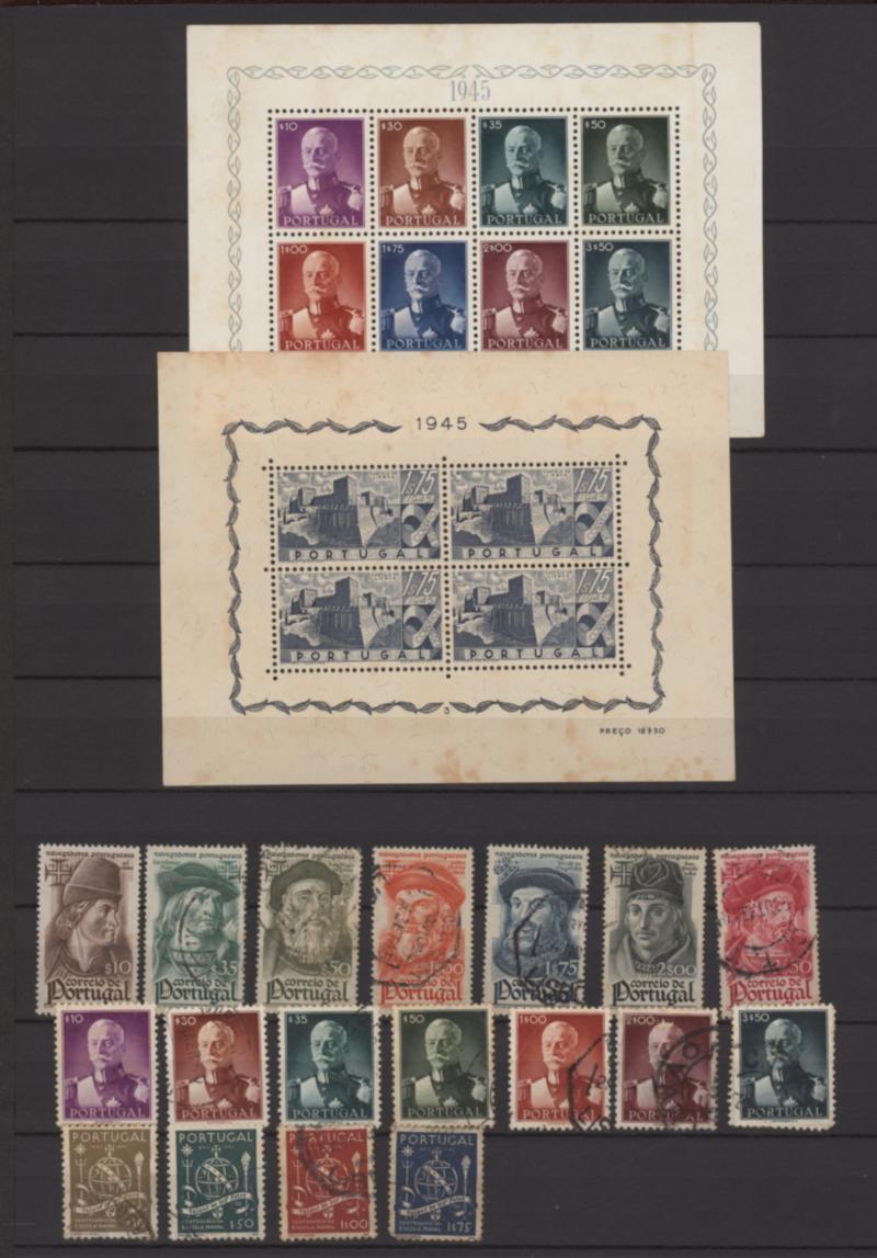 Portugal 1855/1985 (ca.), comprehensive mint and used balance in three stockbooks, partly varied condition, comprising especially a strong section of 1940s/1950s commemoratives, e.g. NATO set severalfold, also some area incl. Angola Bird issue. Very high cat.value! Condition: ** (mint never hinged)/o (used)/* (mint hinged)/(*) (mint without gum) (Image)