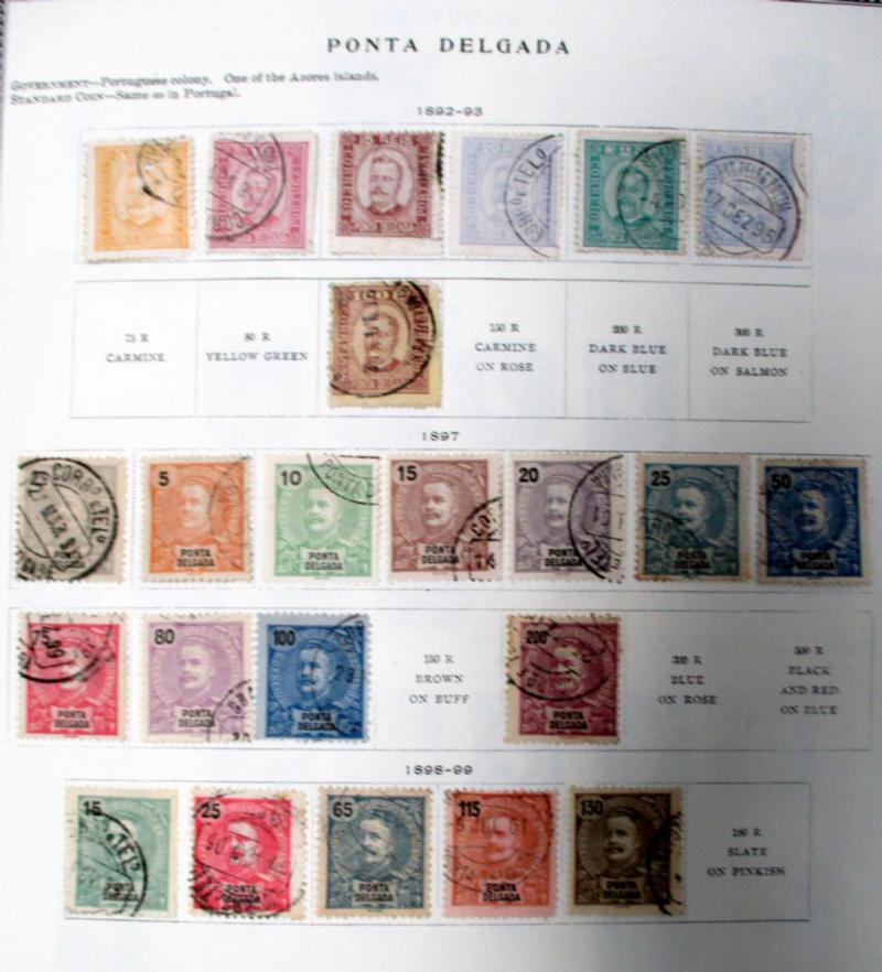 Portugal and Area Classics. Used singles and sets carefully hinged on clean specialty pages, 1853-1940. Hundreds of F-VF stamps. Strong intermediate-advanced holding. Ready for continuation. (Image)