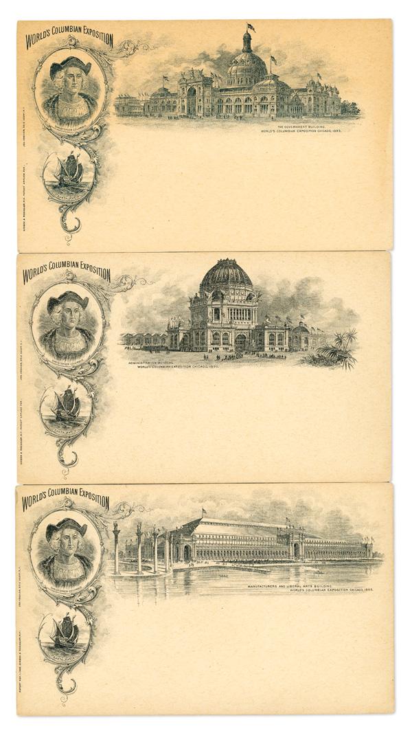 1893, Group of Columbian Exposition Official Souvenir Postal Card Set 2, 3, & 5 Postal Cards, 29 postal cards in total, features primarily used with various designs; condition varies, some in very good condition. (PDF for this Lot) (Image)