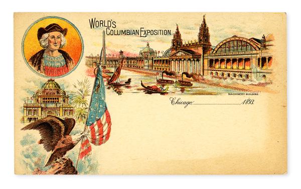 1893, Columbian Exposition Machinery Building Postal Card (UPSS EX79), in unused, very fine condition; Type I postal card with high toning. (Image)