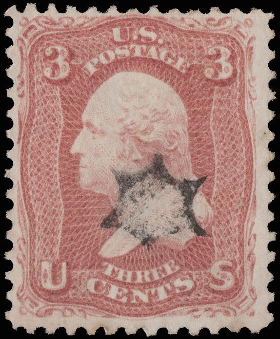 "Bat" of Hingham, Mass., nice strike on an exceptionally fresh 3¢ rose (65), Very Fine. Very rare. Skinner-Eno PA-Bt 1. (Image)