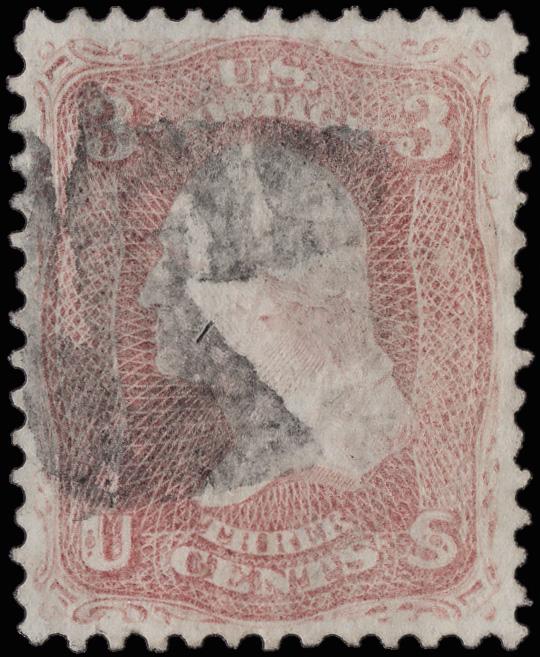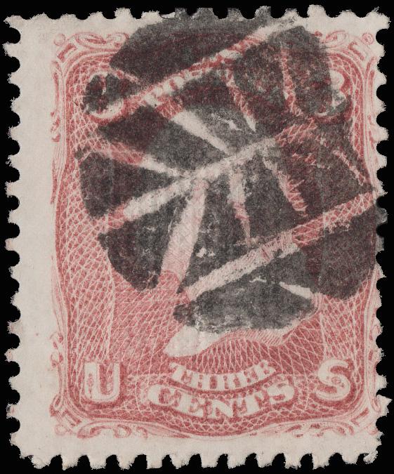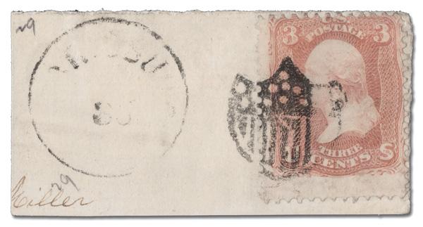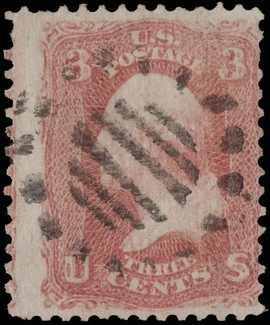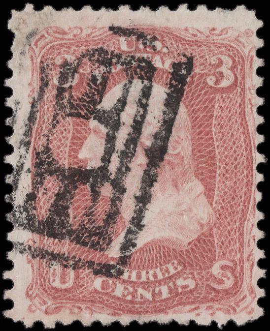 Rectanguler Grid of Kingston, Pa. (Skinner-Eno GE-S 27), mostly clear 80% strike of this unusual design on a Fine 3¢ rose (65). (Image)