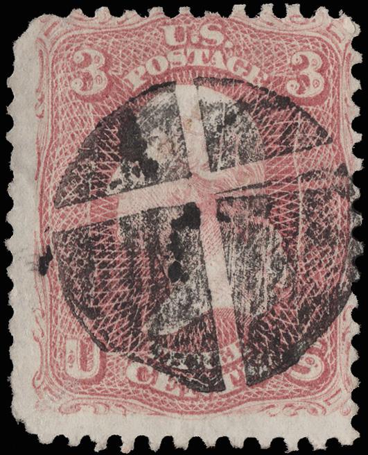 Negative Christian Cross in Circle (Skinner-Eno Unlisted), choice strike on a 3¢ rose (65). (Image)