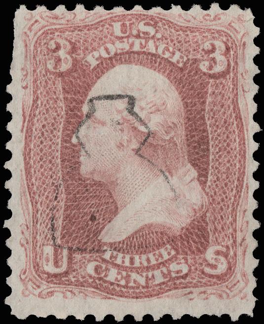 Axe Head of Collinsville, Ct. (Skinner-Eno PO-WT 6), light, mostly complete strike of this fine-lined design on a 3¢ rose (65). (Image)