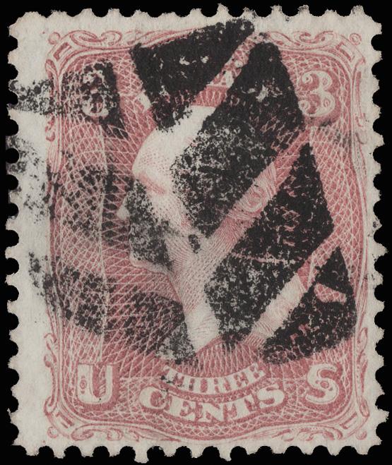 Star & Crescent of Nebraska City, Neb., excellent, complete strike on a Fine 3¢ rose (65). (Image)