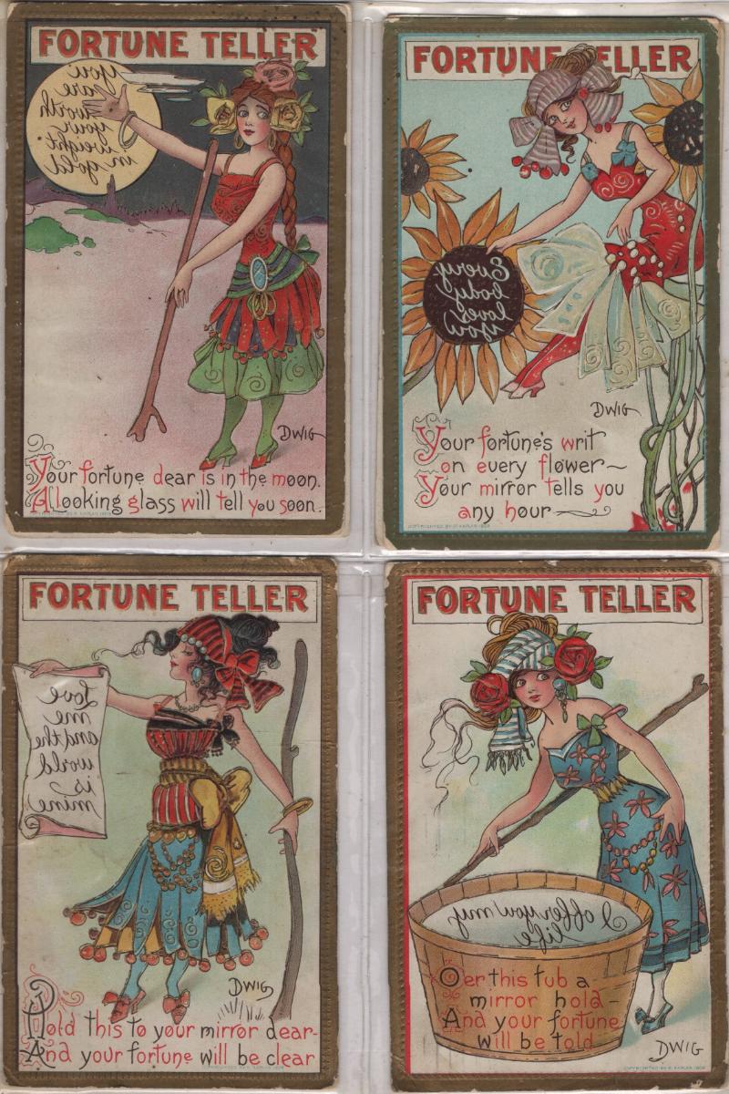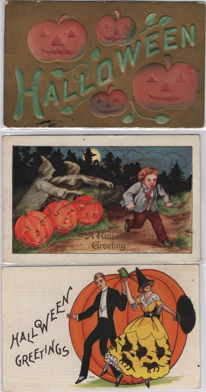 Just in time for Hallowe'en! Group (68) diff, sleeved vintage PPC, noted several artist signed (Brundage, HBG, Taggart, Ross), lots of JOLs, children, witches & more; some flts (flaking of color, corner creases / wear), still colorful & F-VF (Image)
