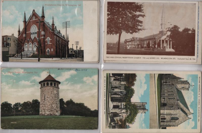 DELAWARE (2) 3-ring binders w/ couple (100) PPC; one binder all Wilmington w/ vintage to early chrome; 2nd is statewide w/ more early chrome, much Dover, some beaches; Wilmington w/ many known & long-gone buildings, churches, parks, hospitals & schools; some mailed, some minor wear, gen F-VF (Image)