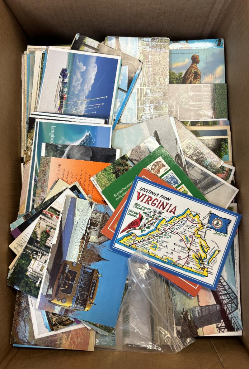 Accum abt (3700) per owner, unsorted, mostly more modern, more travel than greetings, mostly US, no Continental size, mailed/unmailed, some light wear, gen F-VF (Image)