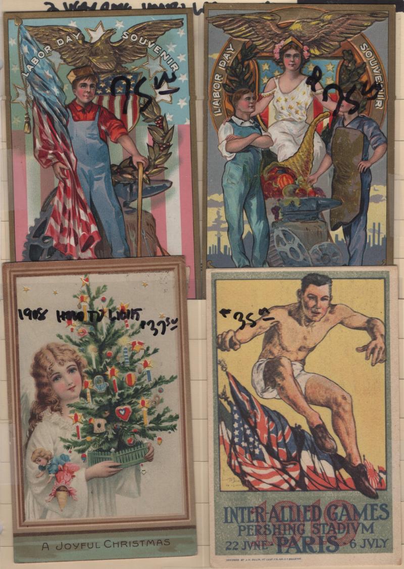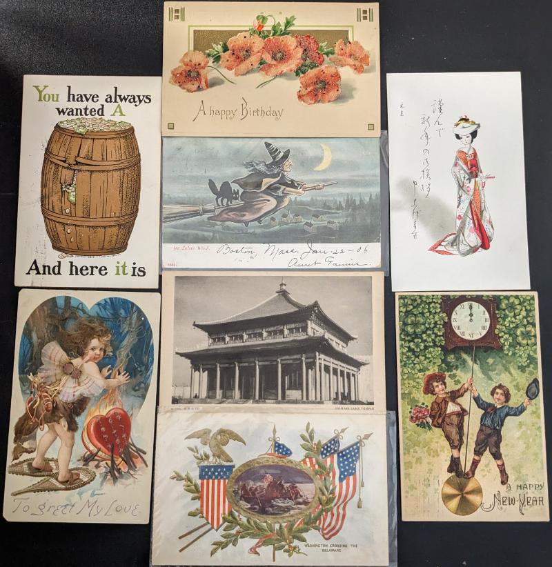 Accum (1500+) w/ many better, large amount of better holidays incl New Year's, Washington's Birthday, 4th of July & others; also heavy dup of photo-series of couple going on automobile ride to woo (Anglo Life Series); small groups of other topicals, incl storks bringing children, art, Irish & more; some typical wear, some are sleeved, gen F-VF (Image)