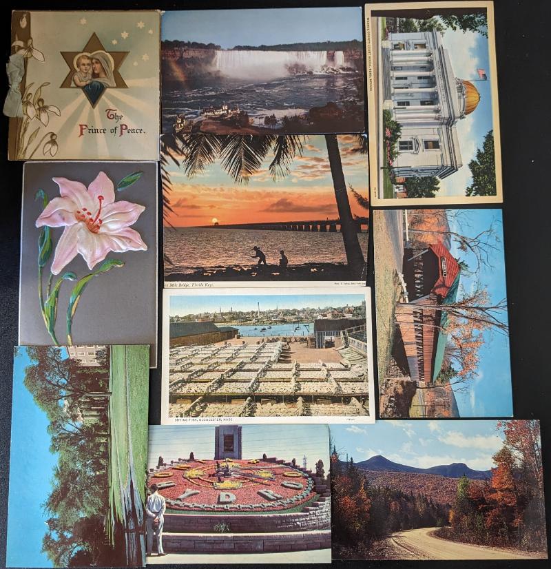 Small but attractive group (267) vintage PPC, primarily scenic incl small towns, churches, parks, historic areas, street scenes, etc; primarily New England but several from LA, NY, FL, DC and Quebec; mostly 1908-12, some mailed (many to same person), couple RPC, undivided backs & Detroit Pub; some typical faults, gen F-VF (Image)