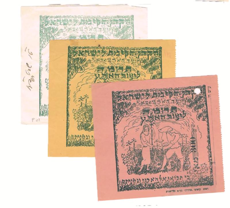 JNF FORMS: SPECIAL RECEIPTS FROM THE VAAD H'ARETZ, collection of 120 different, some with varieties, impossible to duplicate today, many rare. (ex Tsachor). Photo. Estimated Value $750-$850 (Image)