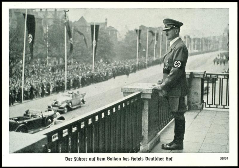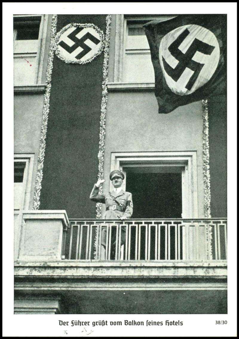 1938, Nazi Party Congress, s / w card "the leader on the balcony of the hotels German Hof", unmailed with cancellation "Asch", alongside red three line ornamental cancel "we have the Yoke bear. " (Image 1)(Image)