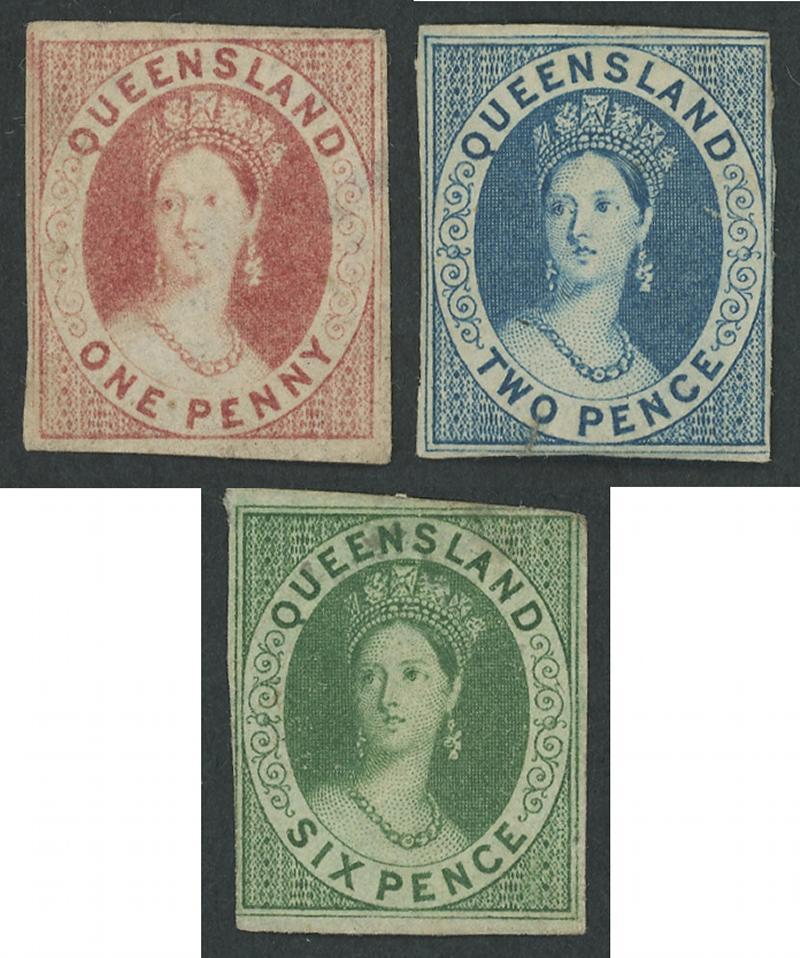 1860 QV Chalons Large Star Watermark Imperforate 1d 2d & 6d SG 1-3, all with margins just clear to good, a few small imperfections, apparently unused, Cat £35,500. Not expertised so necessarily offered 'as is'. (3) (Image1)